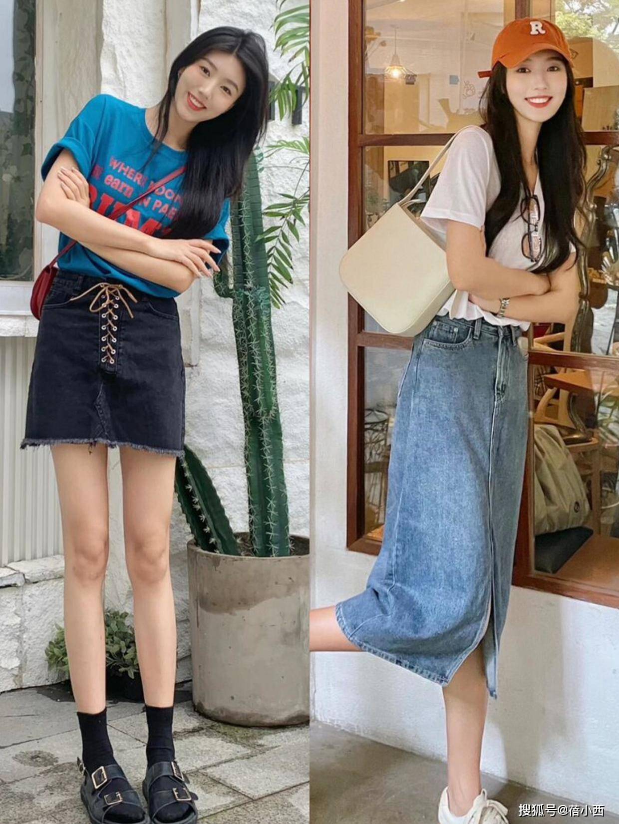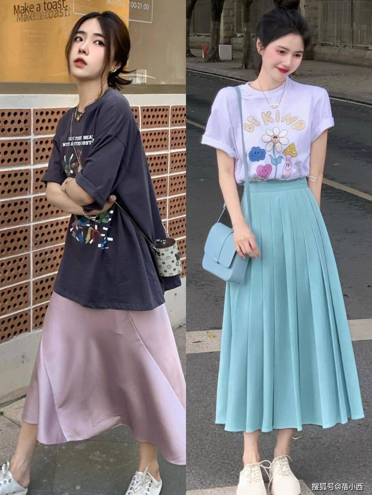 T恤是夏季不可或缺的单品,它的舒适性和随意感与半身裙的搭配形成完美的平衡。为了更好地展现腰线,可以将T恤的下摆塞进裙子里,打造出更加修身的效果。如果你追求轻松随意的感觉,放松T恤的下摆,让整体造型更具个性。