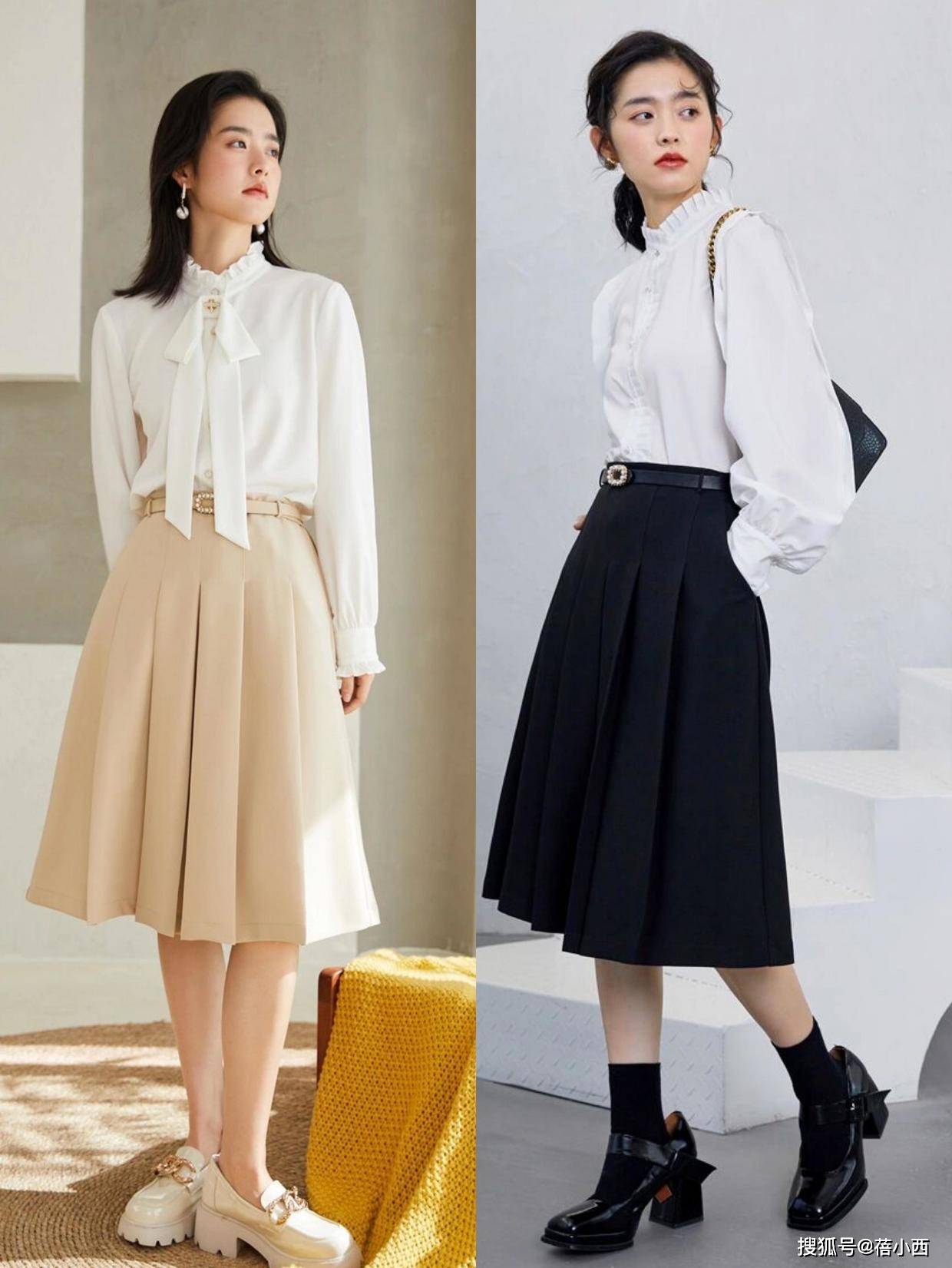 衬衫与半身裙的组合适合任何正式场合,职场女性也可以尝试这样的搭配,展现出知性和优雅。白衬衫配黑色或大地色系的半身裙,不需要太多复杂的搭配,就能突出你的气质与品位。