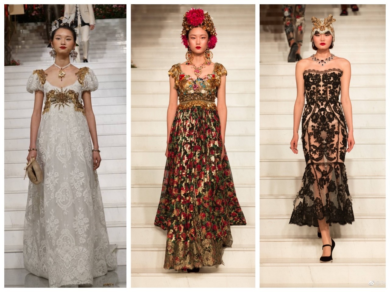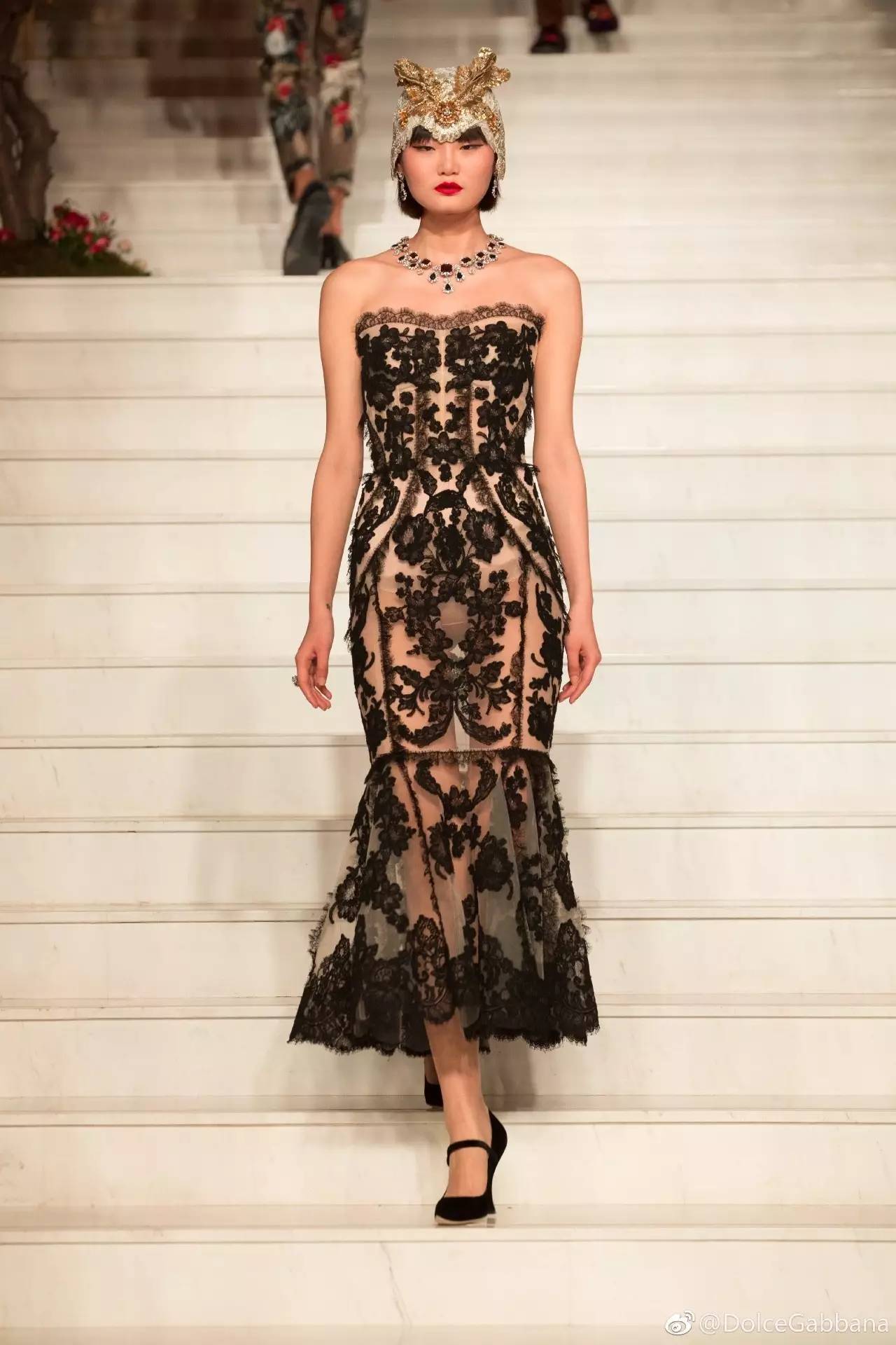 Dolce&Gabbana最为拿手的黑色蕾丝与金色搭配也在系列中层出不穷,华贵而又风情万种。