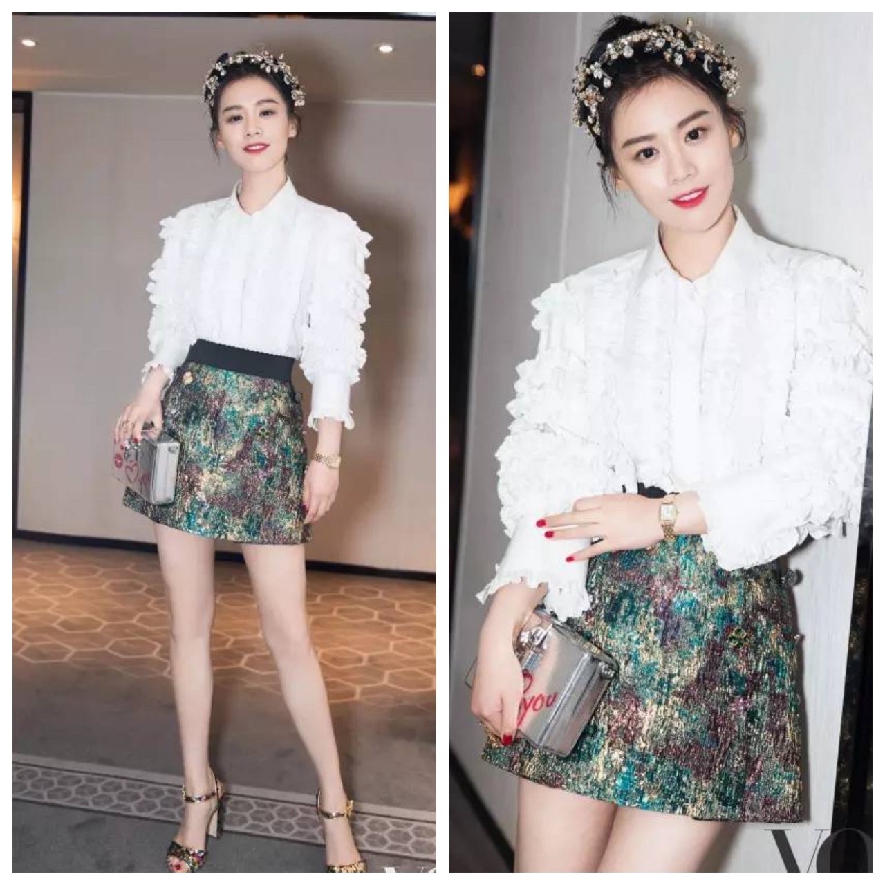 身着宫廷感的白色衬衫搭配亮片短裙的马思纯,头戴的发箍美奂而精灵。今天的造型对比起印象中雍容华贵的Dolce&Gabbana,马思纯这一身很青春性感。